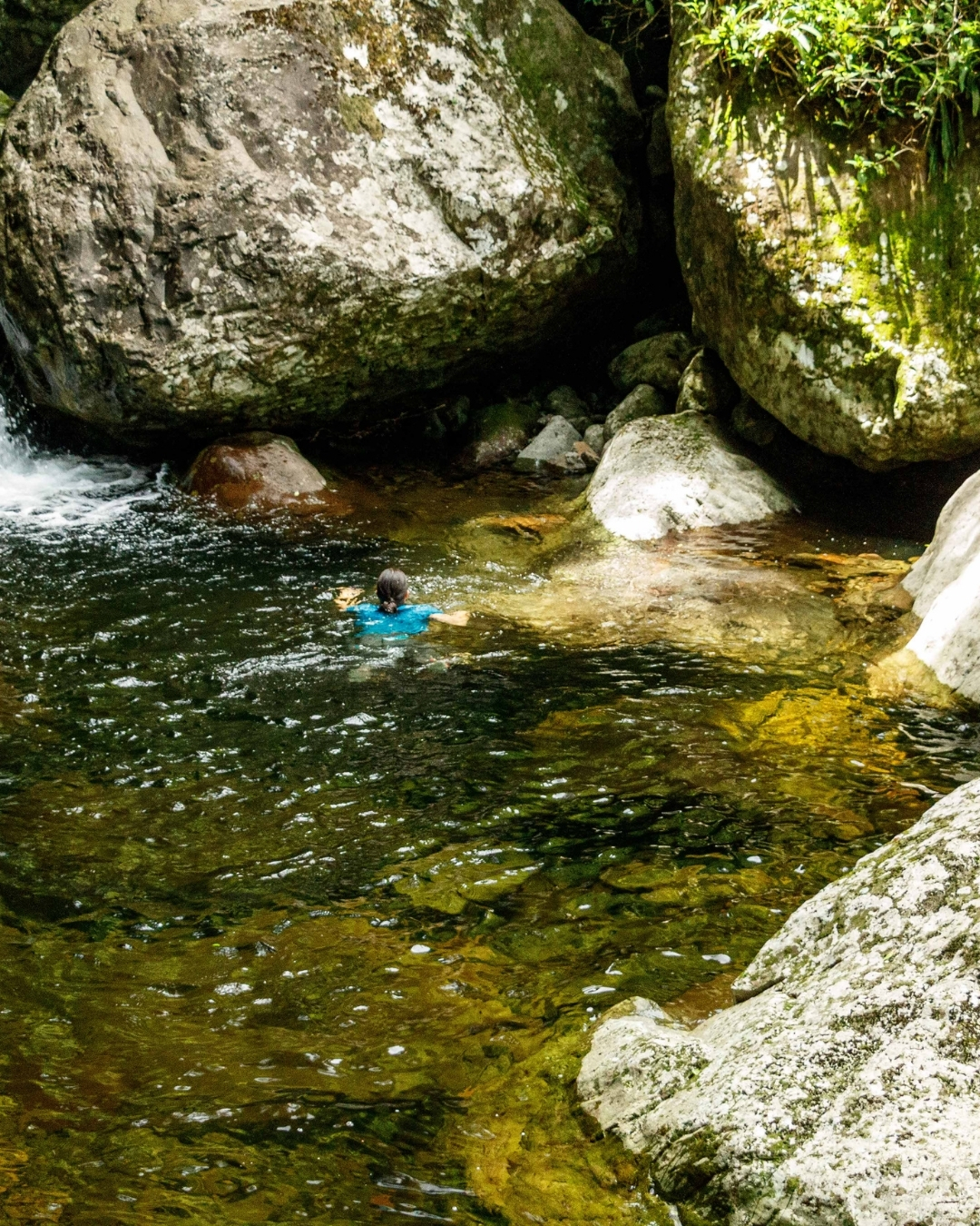 No interior do Canyon Fortaleza, localizado na comunidade de Tigre Preto, interior do município de Jacinto Machado, SC. Imponente como uma fortaleza, esconde belezas e experiências em suas paredes e águas cristalinas, que refrescam os aventureiros e saciam sua sede de aventura.
