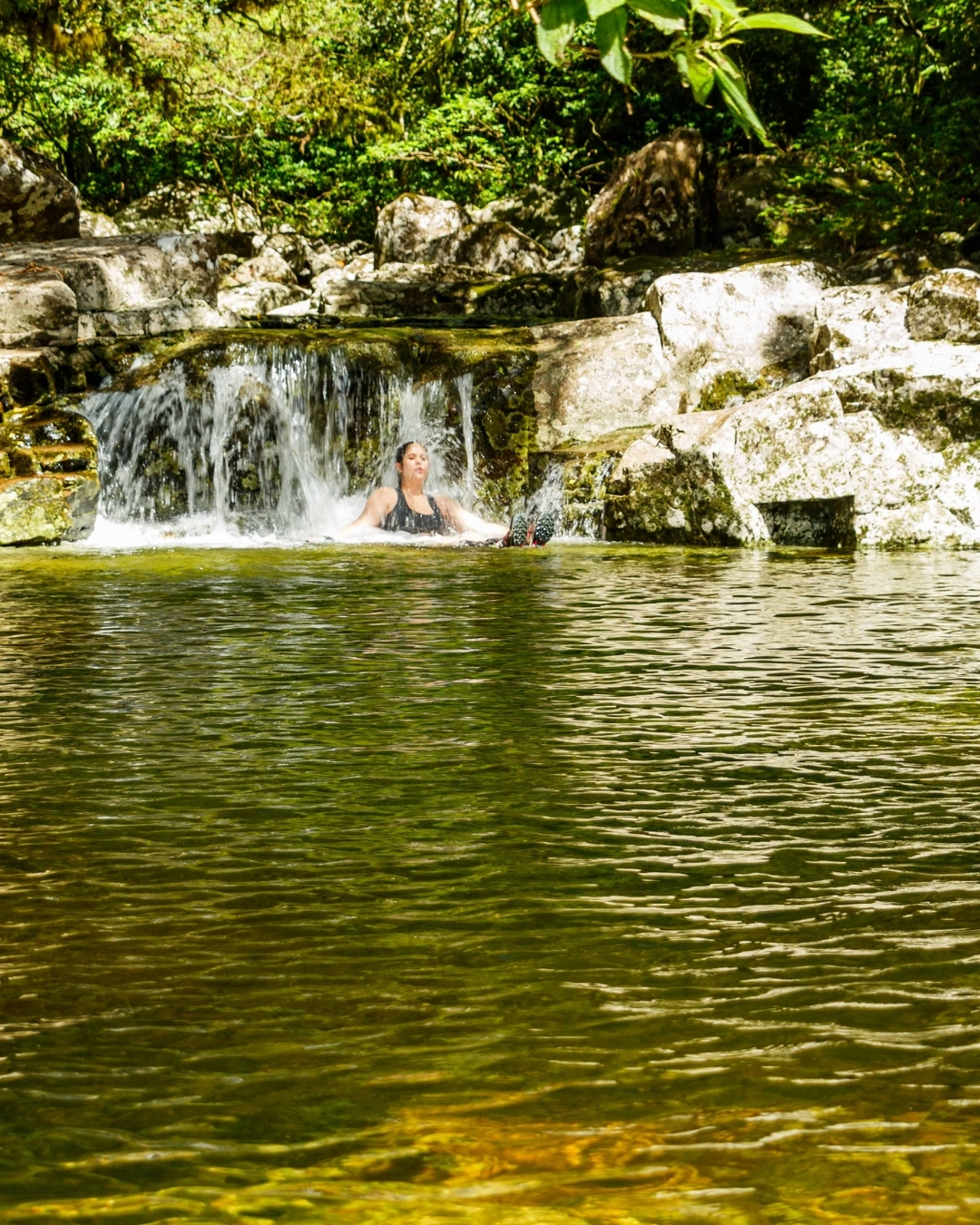 Pontos de interesse: Caminhada no leito do rio, banhos nas piscinas naturais, trilha na mata e vista interna do Canyon Fortaleza.